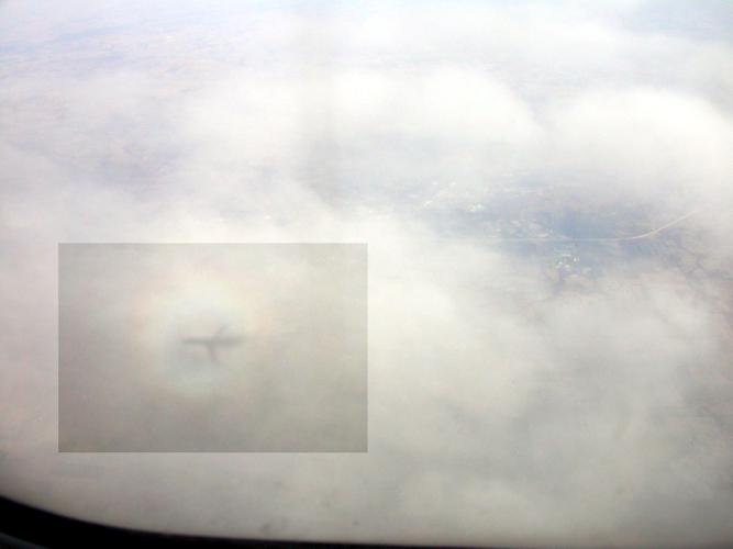Anmerkung: Nicht nur der Mond kann seinen Schatten auf die Erde werfen - sondern natürlich auch die Wolken (die immer noch einen Teil des Lichts durchlassen) oder ein vor der Sonne vorbeifliegendes Flugzeug.
