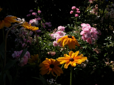 - blume, gelb, rosa, garten, sonnenblume, rose